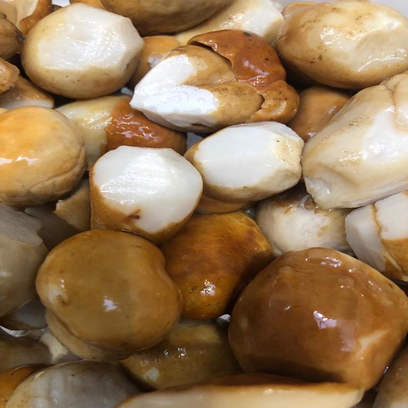 Our porcini are blanched and preserved in a salt brine solution for further processing. This is a primary preservation method for mushrooms which will be further processed in jars with oil, in cans with natural water or any other form of long term preservation.